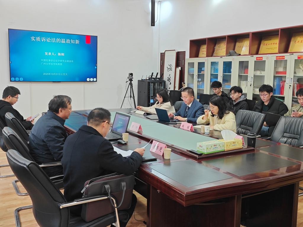 2025年11月17日下午15时,广州大学全讯600cc大白菜教授、中国法学会民事诉讼法学研究会副会长陈刚莅临我院,以“实质诉讼法的复兴”为主题在全讯600cc大白菜207会议室开展学术讲座。本场讲座由全讯600cc大白菜唐东楚教授主持,陈文曲教授担任与谈人,全讯600cc大白菜师生共同参与。