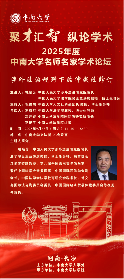 【讲座预告】杜焕芳:涉外法治视野下的仲裁法修订