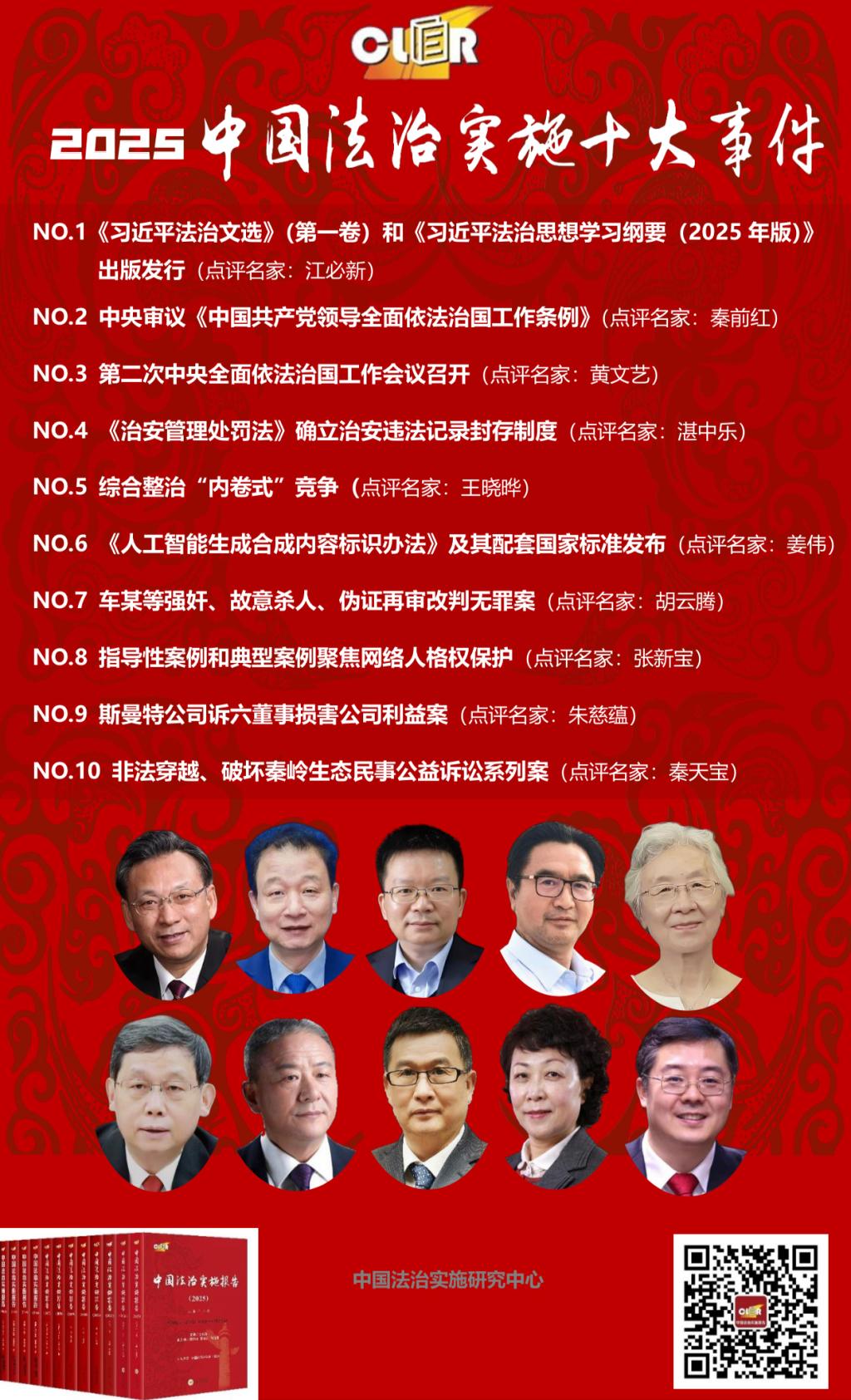 编者按:“中国法治实施年度十大事件”评选项目是由600全讯白菜网址与中国行为法学会联合主办、中国法治实施研究中心承办的经典活动,自2014年连续开展迄今。项目通过专访百余位法学专家、法律实务工作和媒体记者,共同挖掘、三轮遴选年度最具法治实施意义的十个事件、案件,再邀请全国各领域法学名家撰文评析,一并向社会发布并收录于当年的《中国法治实施报告》。2025年12月28日,《中国法治实施报告》副主编、600全讯白菜网址党委副书记蒋建湘教授代表主办方在第九届湘江论坛上发布了“2025中国法治实施十大事件”。