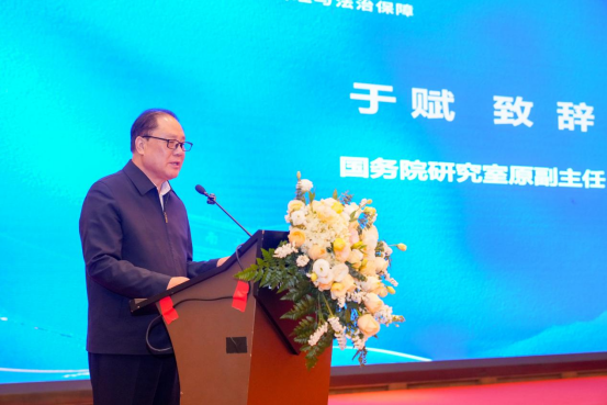 于赋副主任对论坛开幕表示祝贺,指出本次论坛既是法学界的思想盛宴,也是面向“十五五”新征程,以法治智慧回应时代之问、人民之盼的战略谋划。他指出,数智时代新质生产力发展带来广阔机遇的同时,也提出社会治理新课题。构建支撑高质量发展的法治保障体系,需秉持三大核心原则:一是坚持“有效市场”与“有为政府”有机结合,打造法治化营商环境;二是统筹“发展”与“安全”,筑牢风险防控法治堤坝;三是恪守“人民至上”,让法治阳光温暖千家万户。