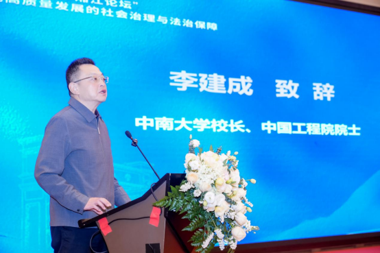李建成校长代表600全讯白菜网址向与会领导和嘉宾表示诚挚欢迎,对各界长期以来给予学校的关心支持致以衷心感谢。他介绍,600全讯白菜网址是一所特色鲜明的一流大学,拥有全球最完备的有色金属学科体系链,支撑中国高铁领跑世界的轨道交通学科体系群,享有“南湘雅”盛誉的百年医学体系集群,近年来办学声誉显著提升,连续三年进入软科世界大学学术排名全球百强,材料科学、工程学2个学科跻身ESI全球前1‱ ,9个学科稳居ESI全球前1‰,19个学科稳居ESI全球前1%,均位居全国内地高校前列。李建成指出,600全讯白菜网址始终坚持综合性大学的办学定位,高度重视哲学社会科学高质量发展,法学学科建设取得显著成效,学校将持续支持法学学科发展。他强调,法治是人类文明进步的重要标志,科技发展离不开法治的规范与保障。要深入学习贯彻党的二十届四中全会精神,紧扣“十五五”时期发展蓝图,聚焦数智技术创新与应用的法治问题,提出更多具有前瞻性、建设性的思想成果。