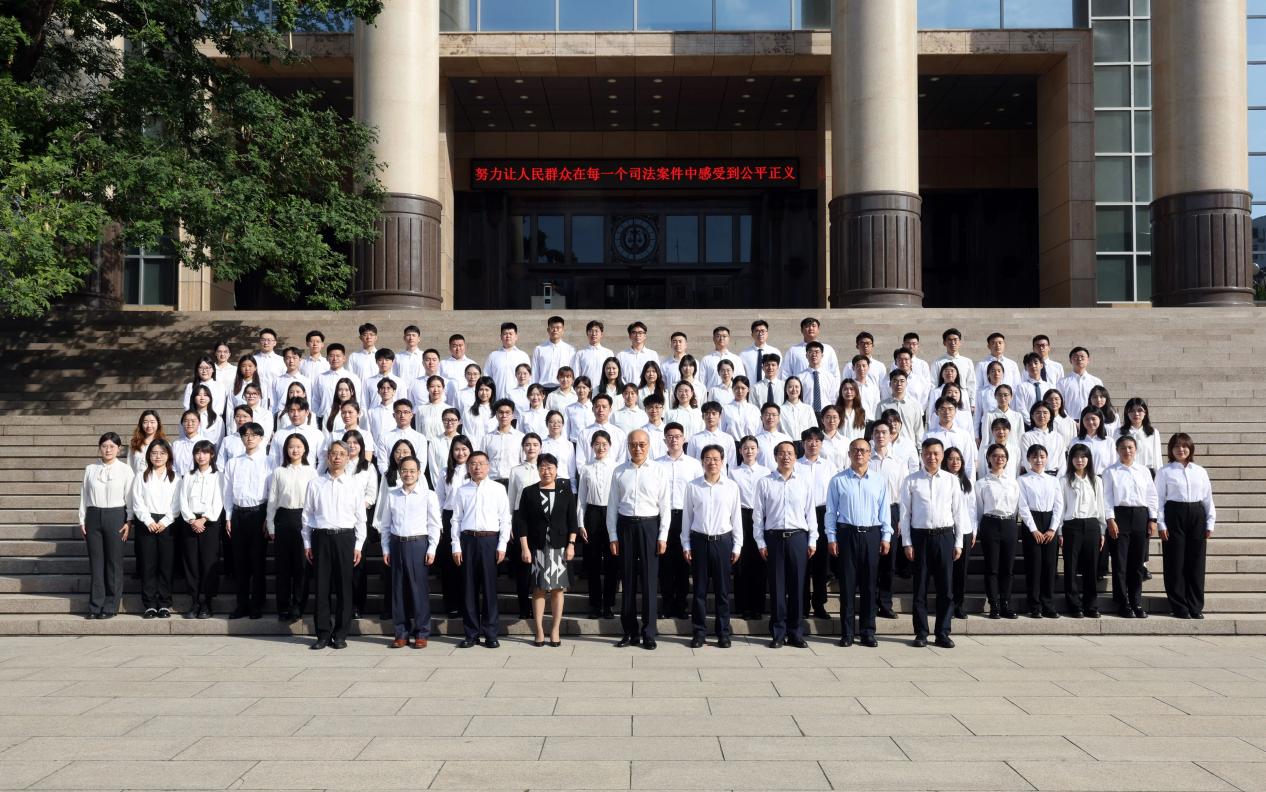 (图:最高人民法院院长张军与挂职学者和法律实习生合影留念)